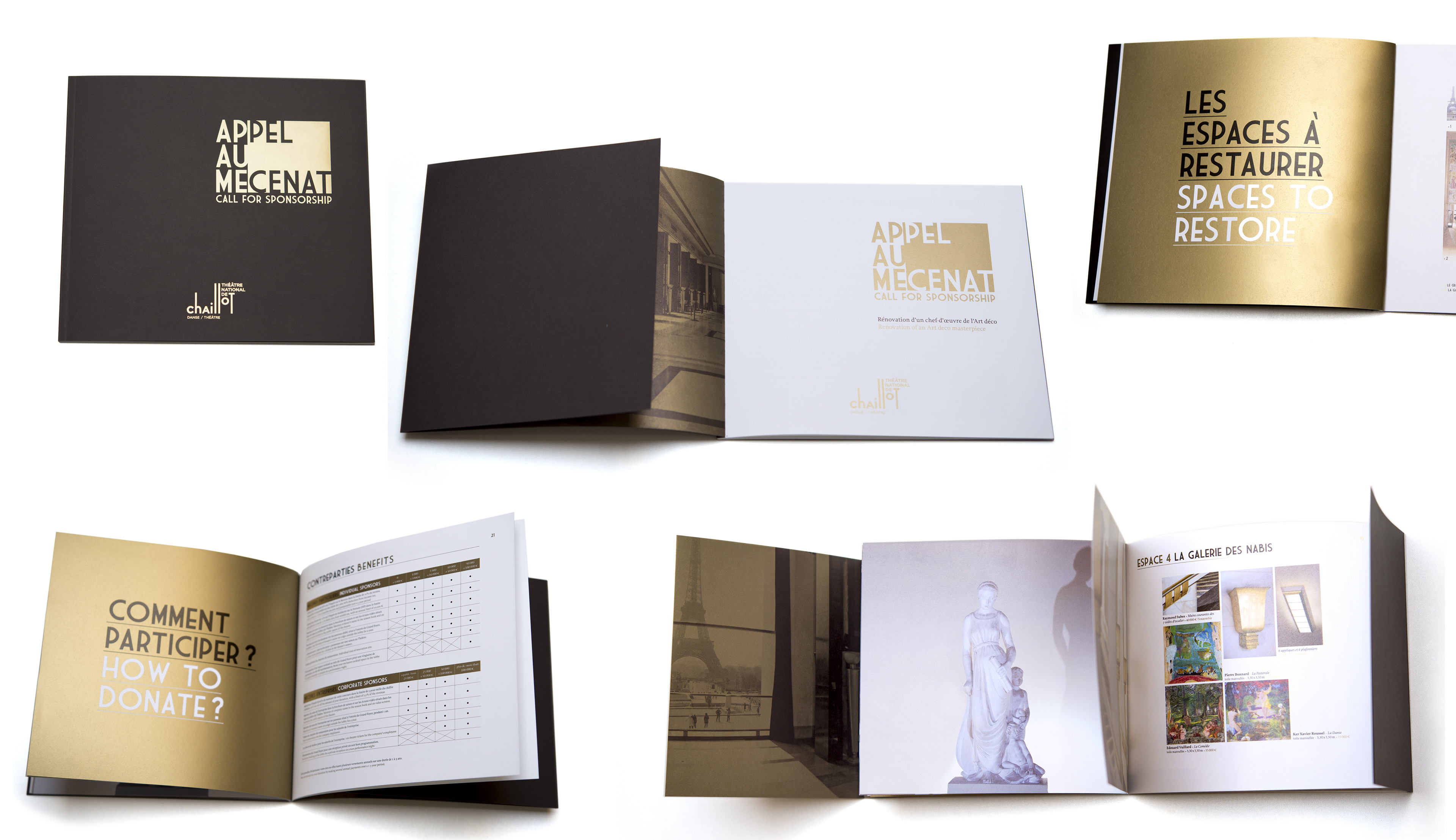 Brochure et invitations d'appel au mécénat et au don pour Chaillot, théâtre national de la danse. Conception et direction artistique, en collaboration avec Amélie Doistau