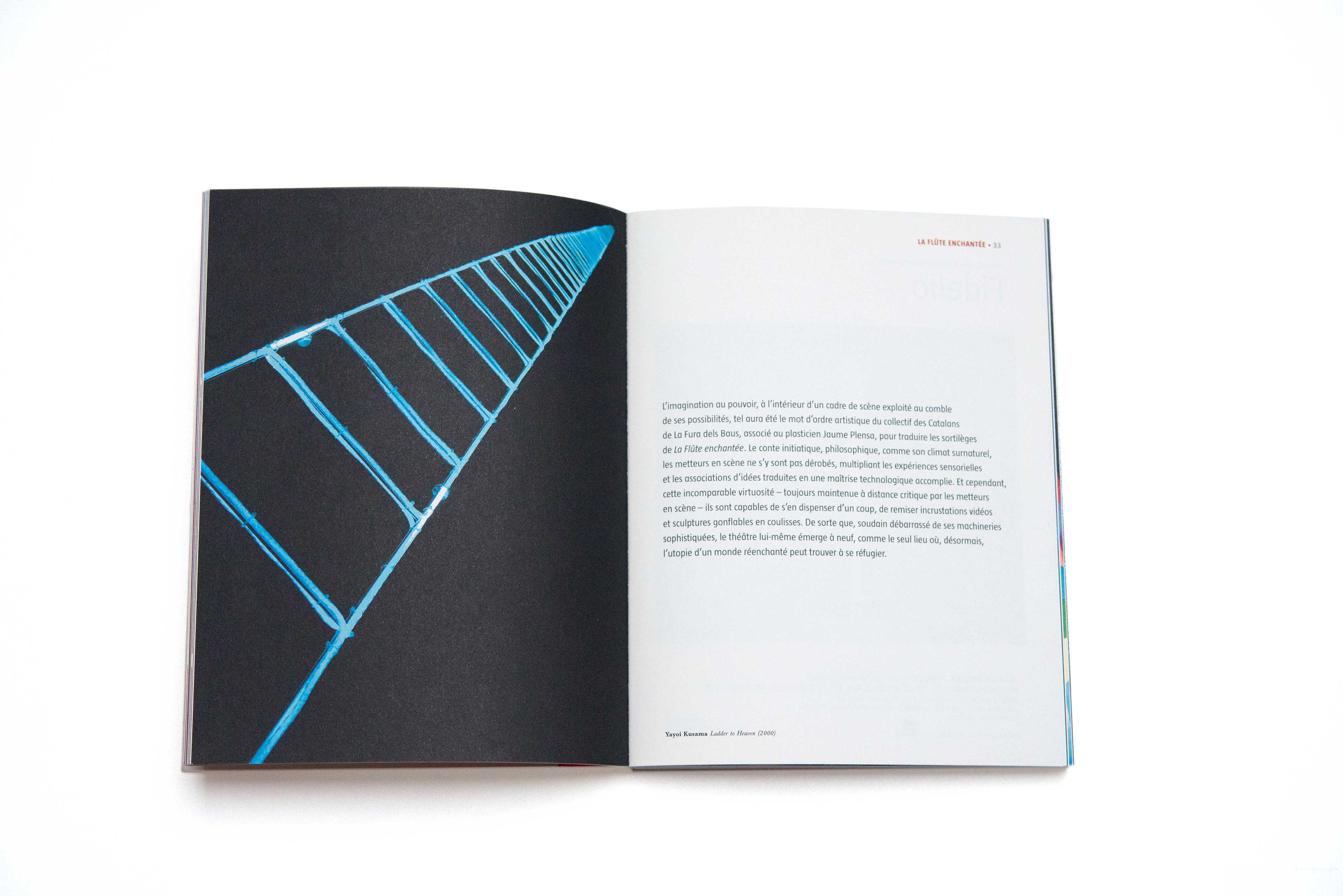 Conception et direction artistique des brochures de saison de l'Opéra national de Paris, au sein de l'agence Atalante, de 2005 à 2009. L'opéra était sous la direction de Gerard Mortier. Les brochures sont illustrées de photographies d'artistes, d'œuvres de plasticiens et cinéastes et ont donc donné lieu à des recherches iconographiques.